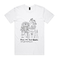 Neck ribbing, side seamed, shoulder to shoulder tape, double needle hems, preshrunk to minimise shrinkage